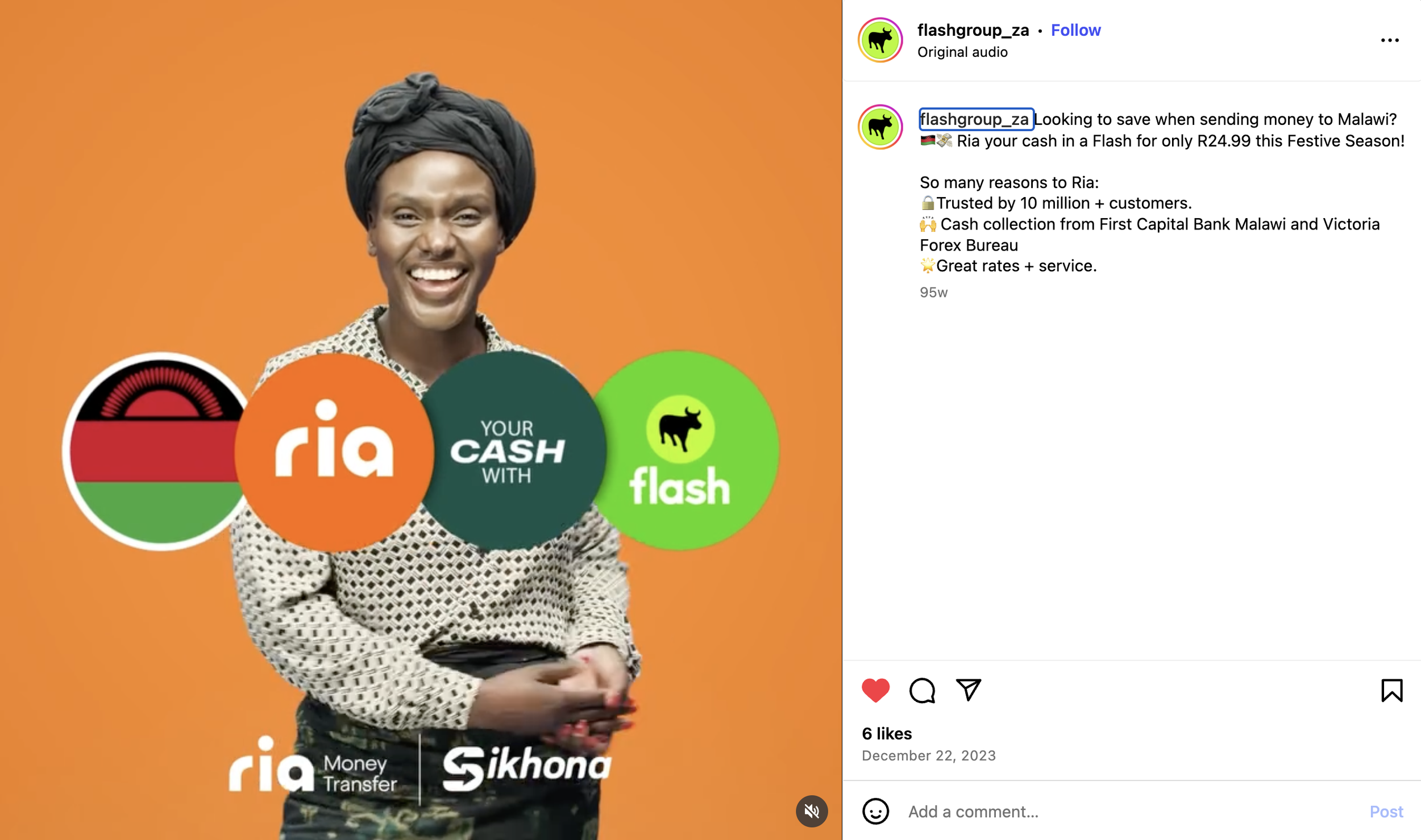 The brief was to launch one of the world’s biggest global remittance companies, trusted by more than 10 million customers, to foreign nationals who send money back to Zimbabwe, Malawi, Bangladesh (and other countries). We created a highly-targeted social campaign that spoke to the pain points of each audience. The whole campaign was shot in a studio on a budget of less than R200K.